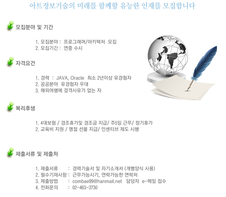(주)아트정보기술 사업자등록번호 : 107-87-62856 대표자 : 강원삼 tel. 02-463-3730