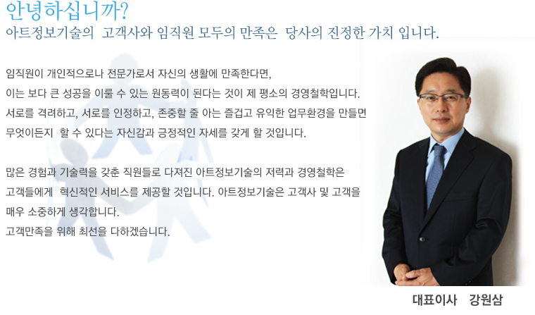(주)아트정보기술 사업자등록번호 : 107-87-62856 대표자 : 강원삼 tel. 02-463-3730
